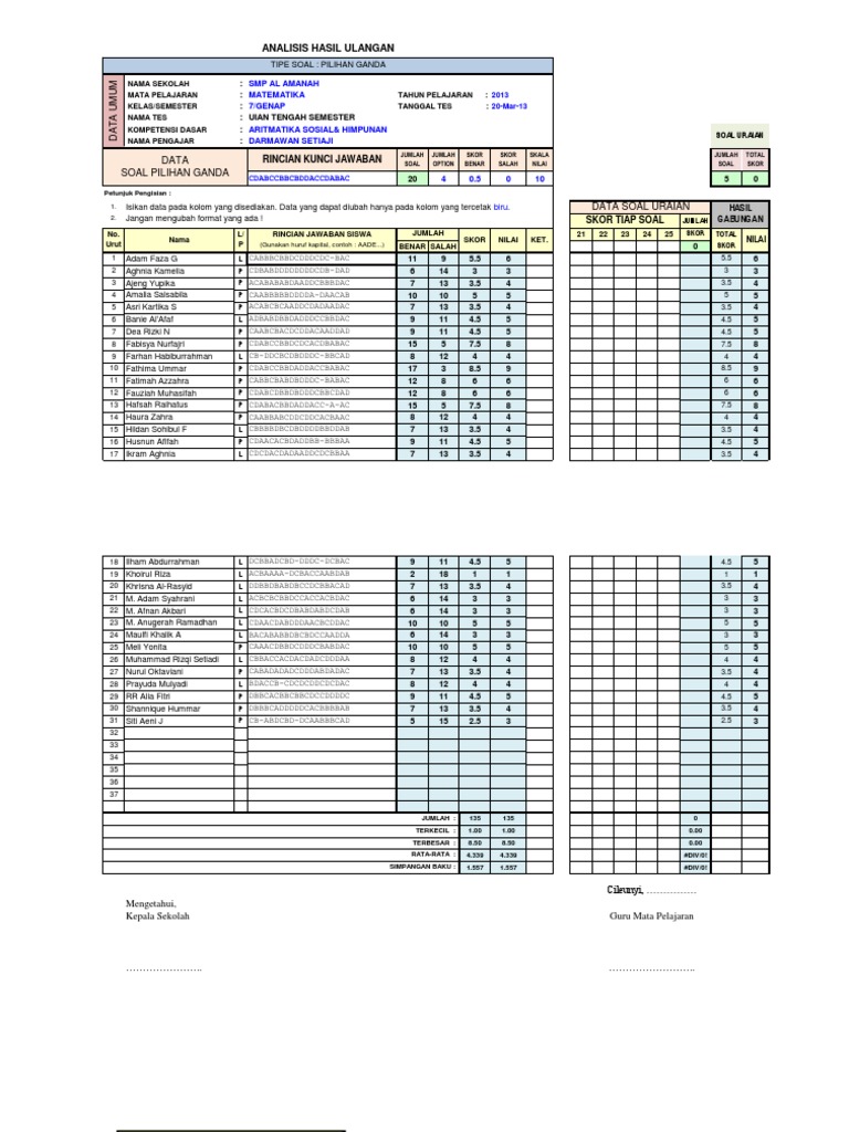 Analisis Butir Soal Pilihan Ganda Kelas 7 Uts Genap 2013