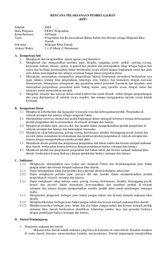 Rpp Pkwu Pengolahan Sma Kelas Xi