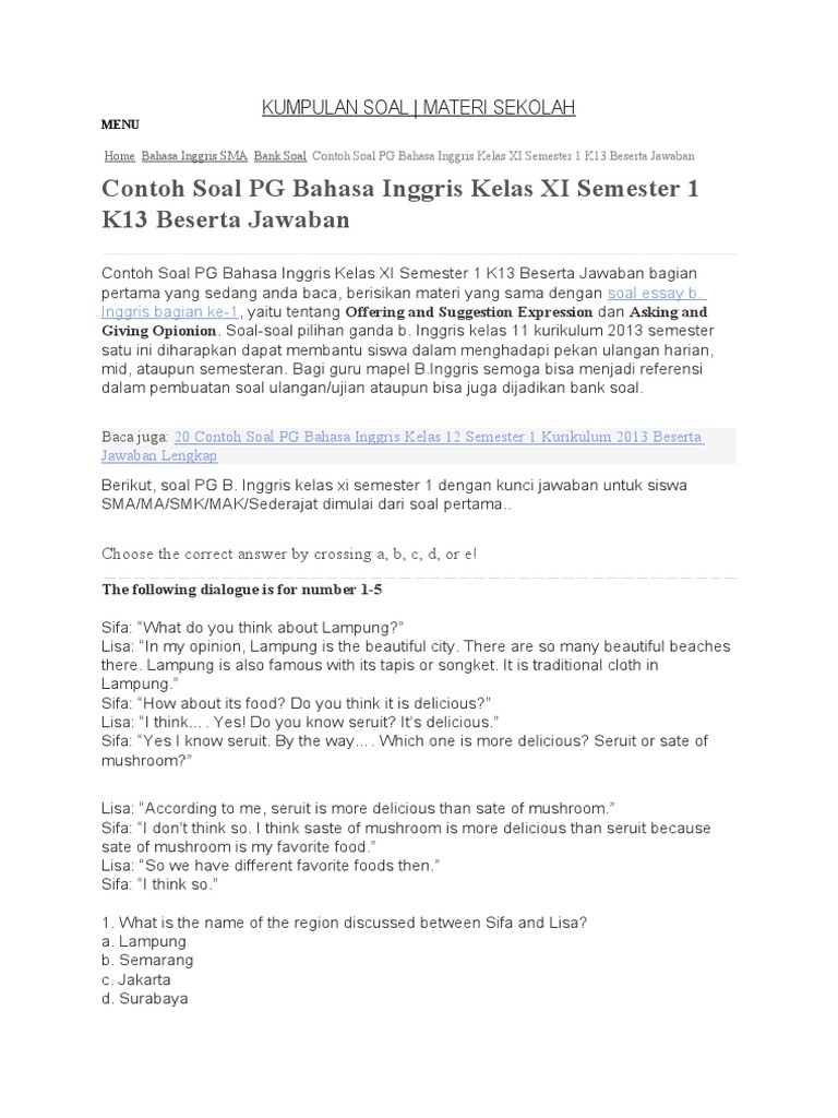 Soal Essay Bahasa Inggris Kelas 12 Semester 1 Kurikulum 2013 Part 5 Essay Right To Education Semester