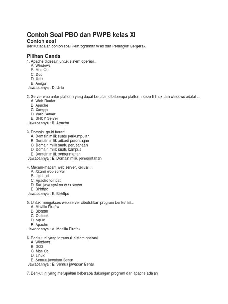 Contoh Soal Pbo Dan Pwpb Kelas Xi