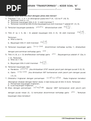 21 Soal Soal Transformasi Geometri