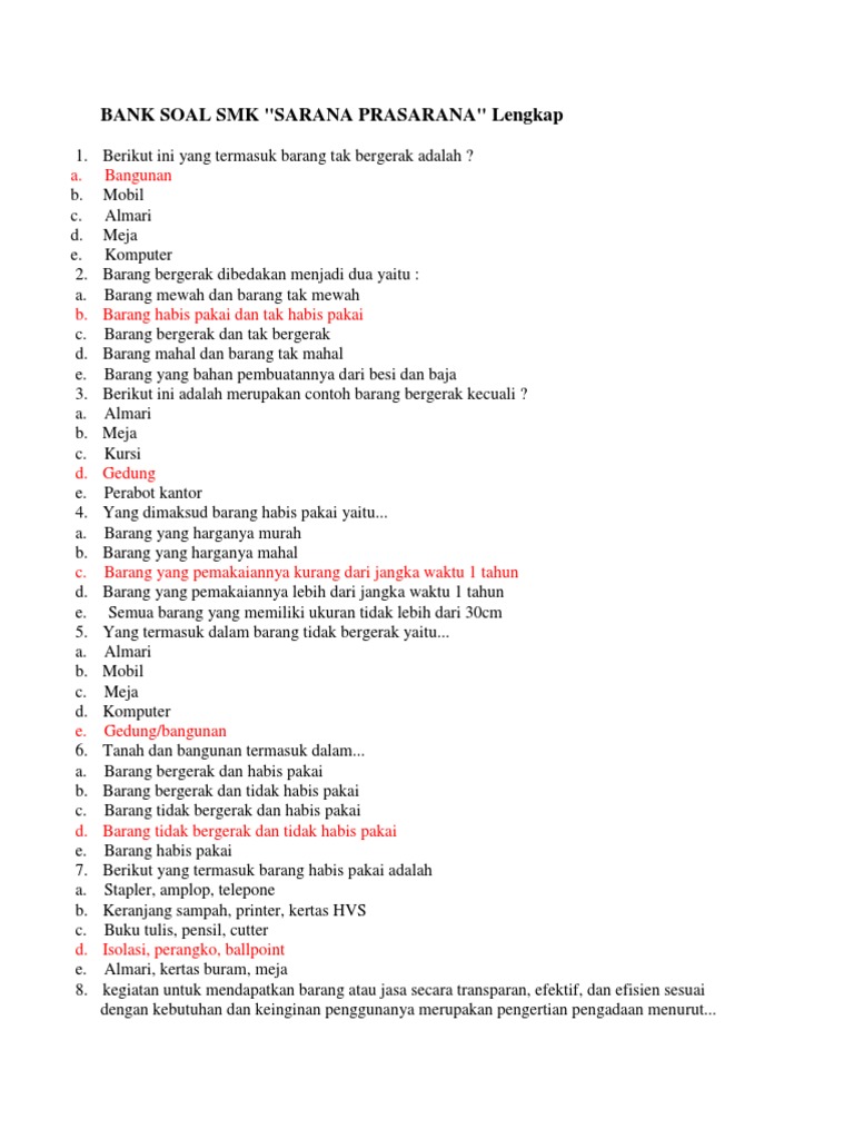 20 Soal pilihan ganda dan 10 soal essay materi admsarana dan prasarana SOAL PILIHAN GANDA. Download Contoh Soal Dan Jawaban Sarana Dan Prasarana PDF 500 MB - SamPDF. Pertambahan pendapatan nasional b.