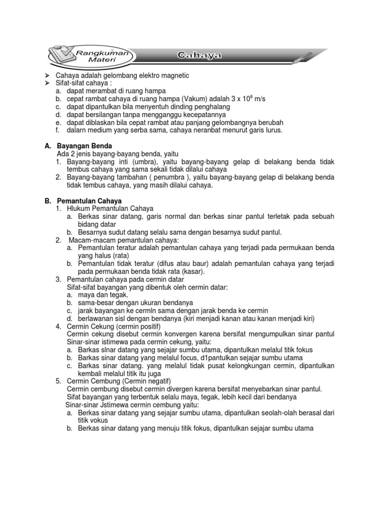 Rangkuman Materi Ipa Kelas Viii Smt2 Cahaya