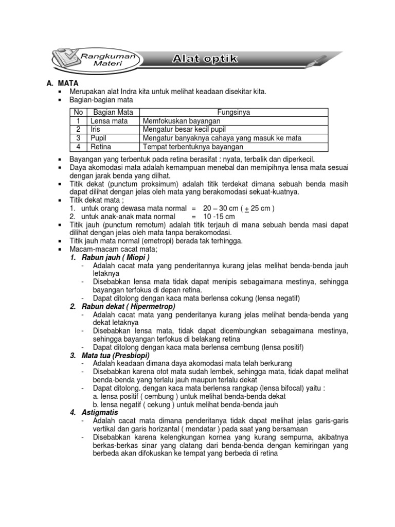 Rangkuman Materi Ipa Kelas Viii Smt2 Alat Optik