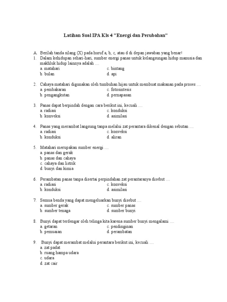 Latihan Soal Ipa Kls 4 Energi Dan Perubahannya