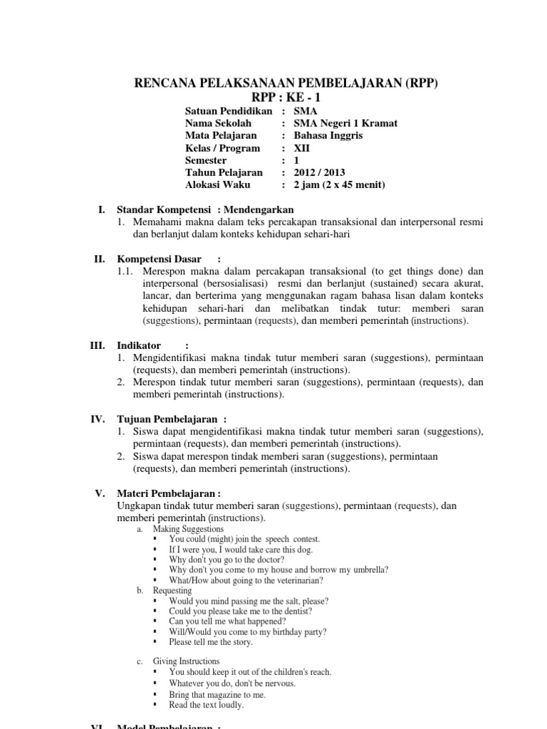 16 Jam 45 Menit. Lesson Plan 3 Sampel Rpp B Inggris Sma Berkarakter Kls Xii Smt1. Contoh RPP Bahasa Inggris SMA Kelas X Semester 1 Reading Skill Kurikulum KTSP.