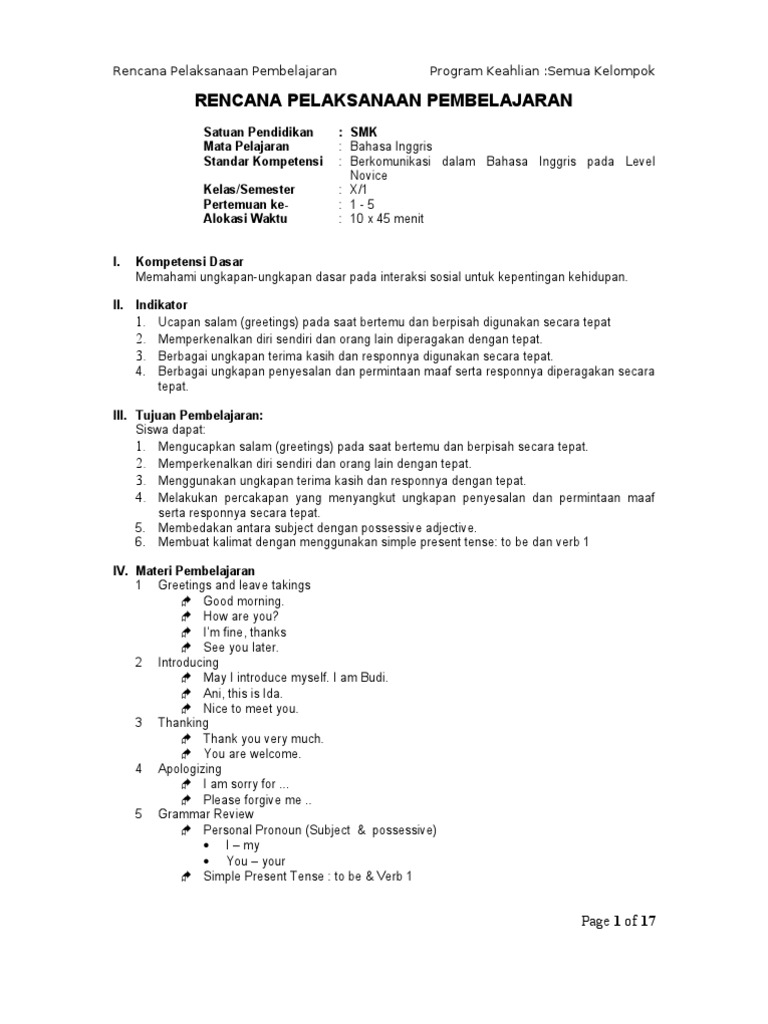 Rpp Bahasa Inggris Ktsp Smk Kelas 10 11 Dan 12 Jagoan Bahasa Inggris