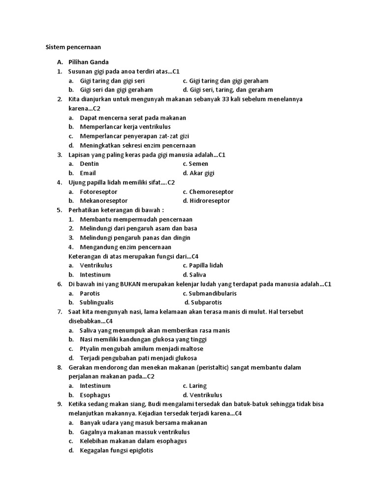 Contoh Soal Pencernaan Dan Jawaban