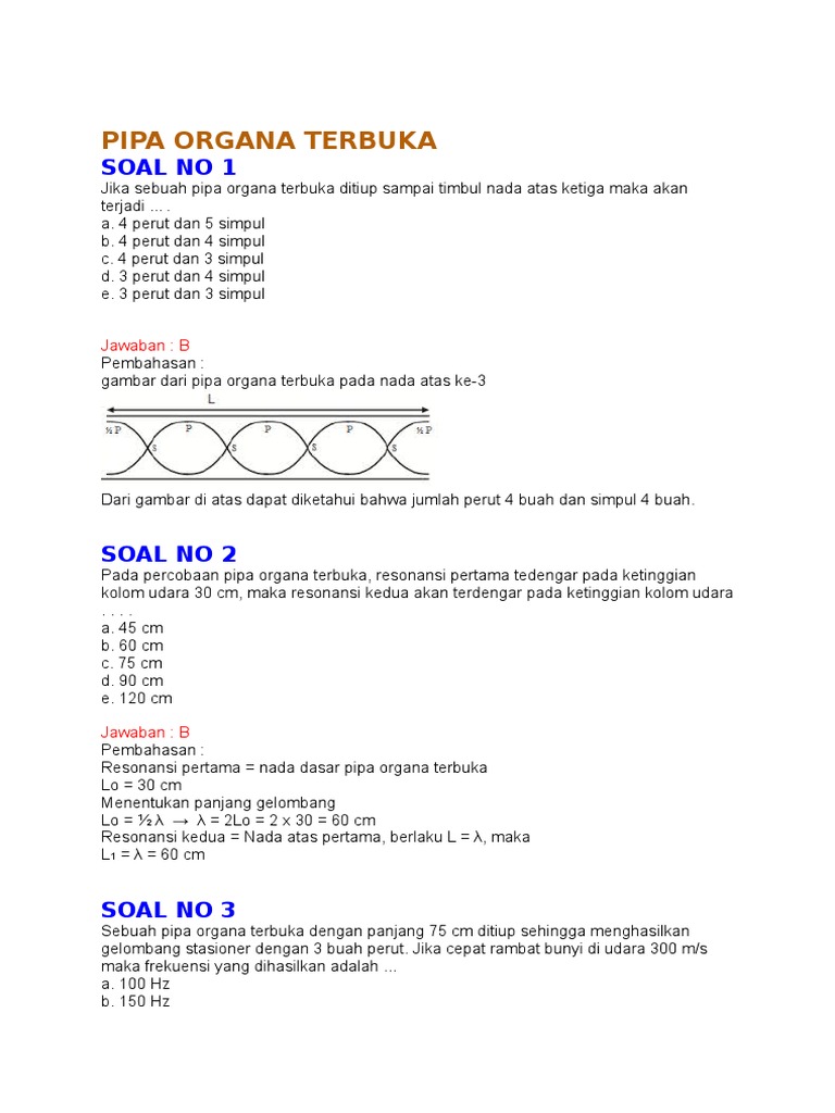 Soal Dan Pembahasan Bunyi Pipa Organa Pdfcoffee Com