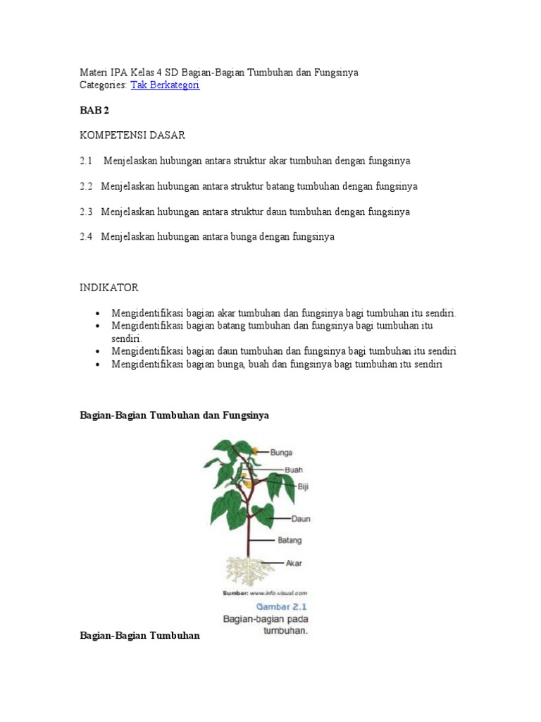 Bagian Bagian Tumbuhan Dan Fungsinya Ipa Sd Kelas Iv Pdf Download Gratis