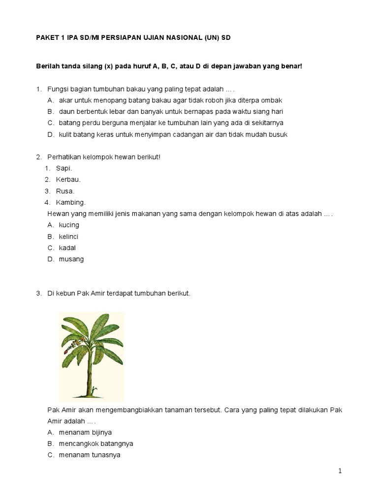 SOAL UH IPA KELAS 4 SEMESTER 1 BAB BAGIAN TUMBUHAN DAN FUNGSINYA Pilihlah salah satu jawaban yang benar dengan menuliskan huruf a b c atau d di buku tugasmu Dokumen terkait 1b petunjuk pengerjaan TES 1 OSN SD IPA 2013.