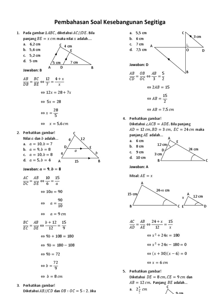 Contoh Soal Dan Pembahasan Kesebangunan Dan Kongruensi Pusat Kajian Matematika